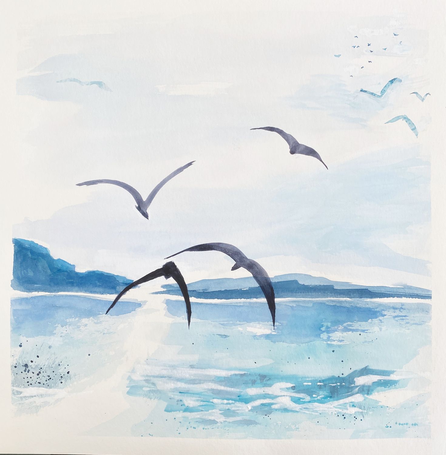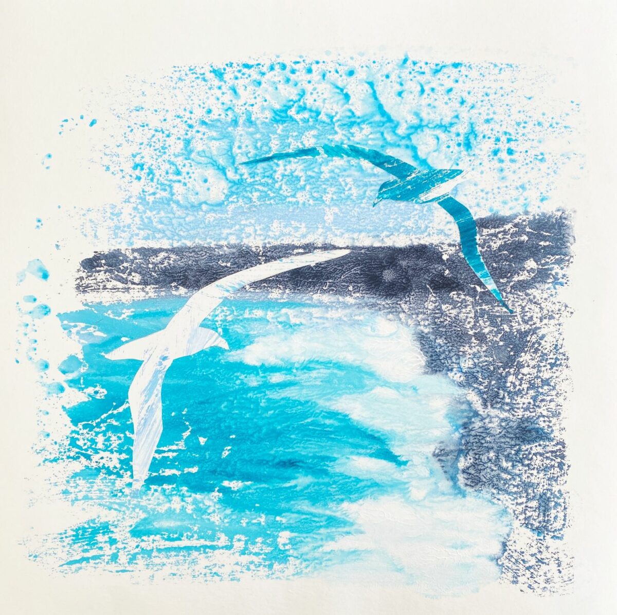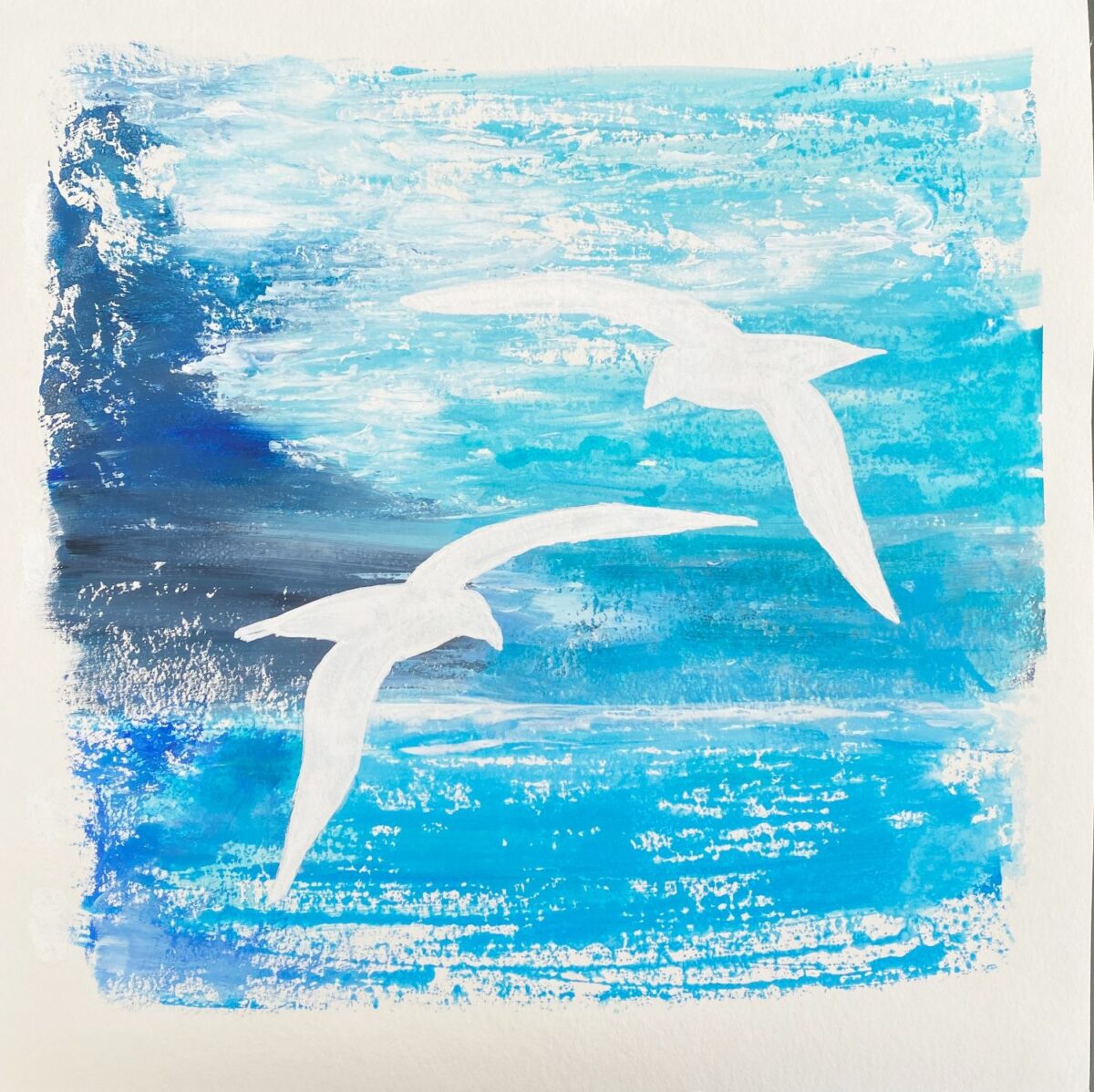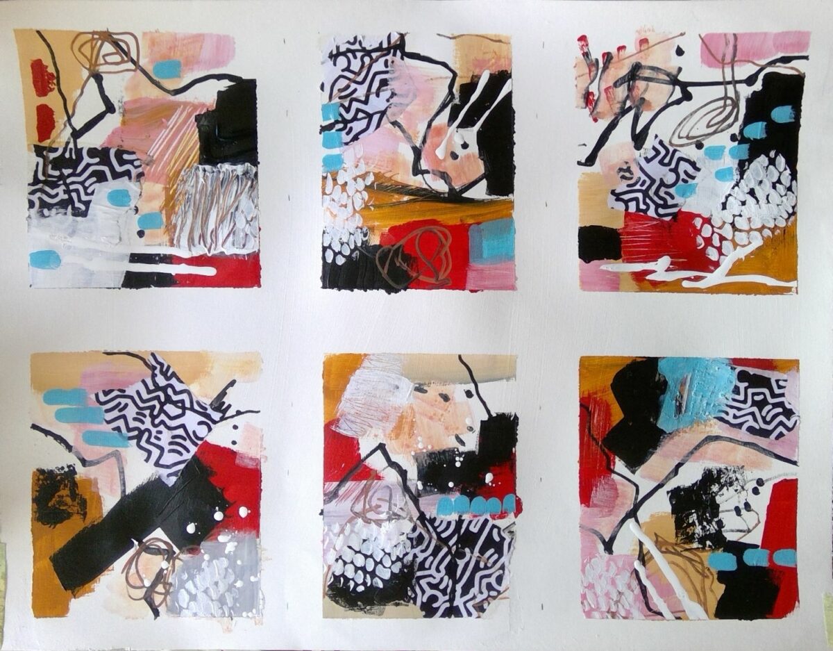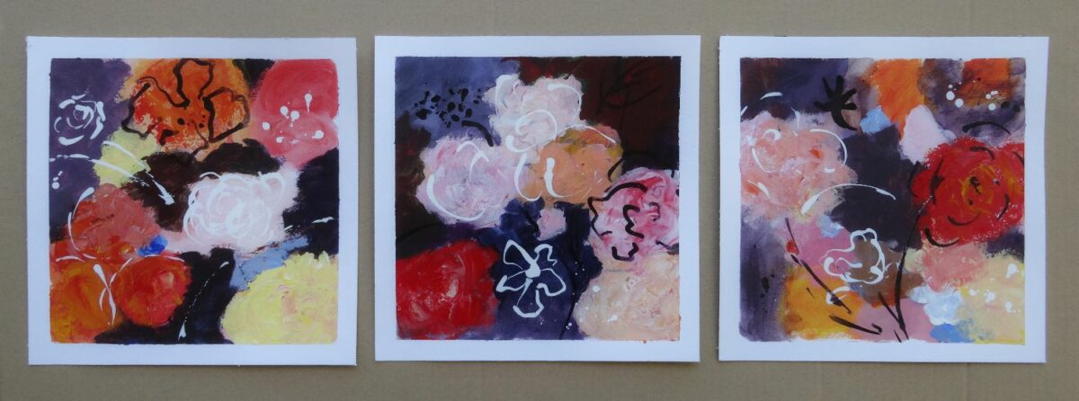 Fleurs abstraites – 3 peintures acryliques sur papier 20×20 cm chacune