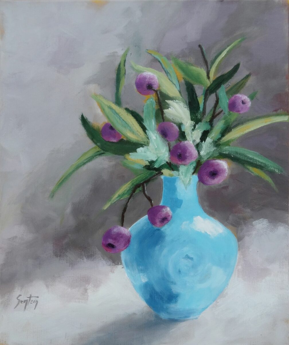 Canellas dans un vase bleu – Acrylique sur toile – 55×46 cm